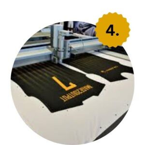 After sourcing, the fabric is cut into pieces based on the patterns. These pieces are then printed or embroidered according to our client's specifications.